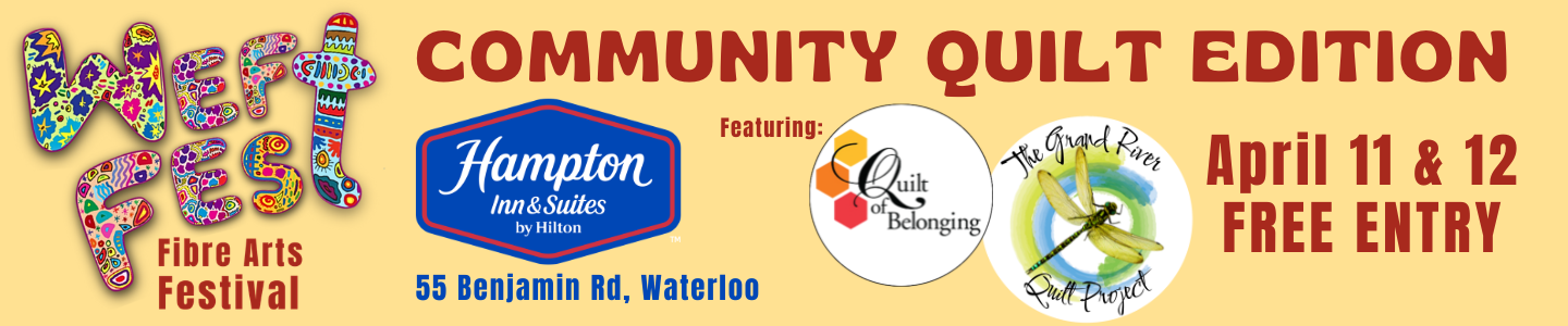 Steps from the Quilt Exhibit at 45 Benjamin Rd, Waterloo. Tickets sold through HomeWood Suites. Call 519-514-0088 to reserve your spot. Friday April 10 7pm … - WEFTFest ’26 Call for Entry